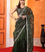 Ready To Wear Green Ruffle Twill Net Saree With Stitched Sequin Blouse And Waist Belt