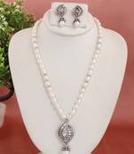 • Product Id : 4196745 • Package Details : 1 Necklace/1 Pair Earrings • Type : Necklace Sets • Occasion : Wedding • Look : Fashion • Jewellery Work : Pearl • Color : White • Plating : Rhodium • Base Material : Silver • Certification : Brand Certification • Pearl Type : Freshwater • Pearl Shape : Natural • Piercing : Yes • Speciality : Natural Fresh Water Pearls Chains With American Diamond Stone Pendant Set.With Certificate For Pearls • Care : Protect It From Perfume, Water And Hard Chemical Substances And Paper Which Looses Colour Payments [+]