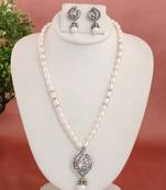 • Product Id : 4196750 • Package Details : 1 Necklace/1 Pair Earrings • Type : Necklace Sets • Occasion : Wedding • Look : Fashion • Jewellery Work : Pearl • Color : White • Plating : Rhodium • Base Material : Silver • Certification : Brand Certification • Pearl Type : Freshwater • Pearl Shape : Natural • Piercing : Yes • Speciality : Natural Fresh Water Pearls Chains With American Diamond Stone Pendant Set.With Certificate For Pearls • Care : Protect It From Perfume, Water And Hard Chemical Substances And Paper Which Looses Colour Payments [+]