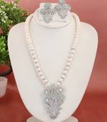 • Product Id : 4196738 • Package Details : 1 Necklace/1 Pair Earrings • Type : Necklace Sets • Occasion : Wedding • Look : Fashion • Jewellery Work : Pearl • Color : White • Plating : Rhodium • Base Material : Silver • Certification : Brand Certification • Pearl Type : Freshwater • Pearl Shape : Natural • Piercing : Yes • Speciality : Natural Fresh Water Pearls Chains With American Diamond Stone Pendant Set.With Certificate For Pearls • Care : Protect It From Perfume, Water And Hard Chemical Substances And Paper Which Looses Colour Payments [+]