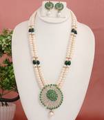• Product Id : 4196668 • Package Details : 1 Necklace/1 Pair Earrings • Type : Necklace Sets • Occasion : Wedding • Look : Fashion • Jewellery Work : Pearl • Color : White • Plating : Rhodium • Base Material : Silver • Certification : Brand Certification • Pearl Type : Freshwater • Pearl Shape : Natural • Piercing : Yes • Speciality : Natural Fresh Water Pearls Chains With American Diamond Stone Pendant Set.With Certificate For Pearls • Care : Protect It From Perfume, Water And Hard Chemical Substances And Paper Which Looses Colour Payments [+]