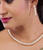 • Product Id : 3623687 • Package Details : 1 Necklace/1 Pair Earrings • Type : Necklace Sets • Occasion : Wedding • Look : Designer • Jewellery Work : Pearl • Color : White • Plating : Rhodium • Base Material : Alloy • Certification : Brand Certification • Pearl Type : Freshwater • Pearl Shape : Oval • Piercing : Yes • Speciality : Natural Fresh Pearls Set With Certificate • Care : Protect It From Perfume, Water And Hard Chemical Substances And Paper Which Looses Colour Payments [+]