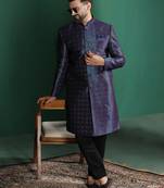 • Product Id : 4600065 • Package Details : 1 Sherwani : 1 Trouser • Type : Sherwani • Work : Embroidered • Bottom Style : Trouser • Sleeve : Full Sleeve • Color : Blue • Bottom Color : Black • Top Color : Blue • Top Fabric : Jaquard • Bottom Fabric : Blended Cotton • Stitching : Stitched Payments [+]