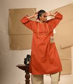 • Product Id : 4523691 • Package Details : 1 Tunic • Type : Tunics • Fabric : Cotton • Work : Woven • Type : Dori Embroidery • Sleeve : Full Sleeve • Neck Style : Round Neck • Color : Orange • Stitching : Stitched • Occasion : Ethnic • Style : Classic • Length : Long • Length : Long Payments [+]
