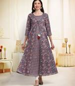 Purple Printed Cotton Ethnic Kurtis