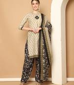 Beige Cotton Blend Printed Ready To Wear Patiala Salwar Suit Stitched