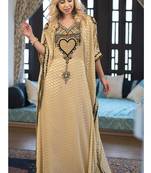 • Product Id : 4286966 • Package Details : 1 Kaftan • Type : Kaftans • Region : India • Fabric : Crepe • Work : Embroidered • Type : Stone Work • Look : Designer • Sleeve : Sleeveless • Neck Style : V Neck • Color : Beige • Stitching : Stitched • Length : 58.0 Stitching [+]