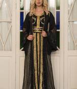 Black And Beige Partywear Jacket Style Moroccan Dress