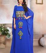 • Product Id : 4290228 • Package Details : 1 Kaftan • Type : Kaftans • Region : India • Fabric : Georgette • Work : Embroidered • Type : Stone Work • Look : Designer • Sleeve : Sleeveless • Neck Style : Boat Neck • Color : Royal Blue • Stitching : Stitched • Length : 58.0 Stitching [+]
