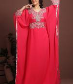 • Product Id : 4286896 • Package Details : 1 Kaftan • Type : Kaftans • Region : India • Fabric : Crepe • Work : Embroidered • Type : Stone Work • Look : Designer • Sleeve : Elbow Sleeve • Neck Style : Round Neck • Color : Pink • Stitching : Stitched • Length : 58.0 Stitching [+]