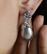 The chic droplet design which is in the shape of a pearl finished with the high-quality artificial diamonds and got the secure screw-back fastening for a sophisticated and elegant finish.; Category Of Jewellery is Earring; Sub Category is Drop; Ideal For Women; Color is Silver, White; Gemstones Used - American Diamond, Natural Stones; Plating is Silver-Plated; Base Metal is Alloy; Other Material Used - Closure Stopper; Size is Freesize; Adjustable - No; Weight is 13 gms; Mesaurements - Length of Earring= 4.5 CM; Width of Earring =2 CM; Adjustable - No; Content 1 Pair Earring