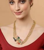 Category of jewellery is necklace; sub category is layered; ideal for women; color is gold, green, purple, white, pink, peach , orange; gemstones used - pearls, natural stones, faux emerald; plating is gold-plated; closure is lobster closure; base metal is sterling silver; usp is multi layer necklace; other material used - adjustable chain; size is freesize; adjustable - yes; weight is gms; mesaurements - length of necklace =45 cm; width of necklace = 7 cm; adjustable - no; content 1 necklace.