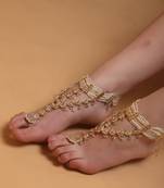 Gift yourself with these beautiful Bridal Anklet for the wedding to be worn at the time of phere , a perfect mix of Red and Gold colours. Handcrafted to perfection with Kundan work blended very nicely with Pearls and Natural Stones. This Anklet is a work of art and designers' hard work. These can we worn on any occasion as per your preference weather it is wedding or any festival or even any get together or you may wear it every day in office or otherwise. Step in the world with this Anklet and express how much you love yourself.; Category Of Jewellery is Other Accessories; Sub Category is Anklet; Ideal For Women; Color is Red, Gold, White, Cream; Gemstones Used - Kundan, Pearls, Natural Stones; Plating is Gold-Plated; Base Metal is Alloy; Other Material Used - Adjustable Chain; Size is Freesize; Adjustable - Yes; Weight is 55 gms; Mesaurements - Length of Anklet= 14 CM; Width of Anklet =16 CM; Adjustable - Yes; Content 1 Anklet