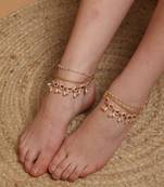 Gift yourself with these beautiful Anklet for women made with round pearls complemented with Drop shaped Kundan with colored stones, a perfect mix of Red and Gold colours. Handcrafted to perfection with Kundan work blended very nicely with Pearls and Natural Stones. This Anklet is a work of art and designers' hard work. These can we worn on any occasion as per your preference weather it is wedding or any festival or even any get together or you may wear it every day in office or otherwise. Step in the world with this Anklet and express how much you love yourself.; Category Of Jewellery is Other Accessories; Sub Category is Anklet; Ideal For Women; Color is Red, Gold, White, Cream; Gemstones Used - Kundan, Pearls, Natural Stones; Plating is Gold-Plated; Base Metal is Alloy; Other Material Used - Adjustable Chain; Size is Freesize; Adjustable - Yes; Weight is 52 gms; Mesaurements - Length of Anklet= 23 CM; Width of Anklet =5.5 CM; Adjustable - Yes; Content 1 Anklet