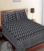 Black Motif Printed Cotton Double Bedsheet With 2 Pillow Cover (90x100inch)