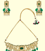 Runjhun Gold Plated Green & Golden Kundan Studded & Beaded Jewellery Set For Womens