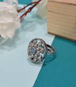 Exotic Round Shape Silver Plated Kundan Stone Adjustable Finger Ring For Women And Girls