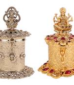 Traditional Laxmi Design Antique Gold Plated Brass Set Of 2 Combo Sindoor Dani/Dibbi For Women