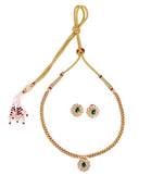 Traditional Round Shape Golden Balls Green Stone Gold Plated Choker Necklace Set For Women