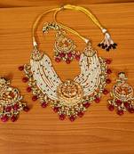 This kundan polki necklace set is made in silver & brass alloy with imitation kundan polki stones & pink colour beads of extremely fine quality. This gorgeous kundan choker set plated with 18kt nickle free gold rhodium that gives the design a real gold look & comes with a matching pair of perfect size earrings and one maang tikka which are absolutely gorgeous and are light in weight.