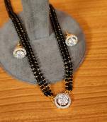 This beautiful mangalsutra is handcrafted in silver & brass alloy with imitation premium quality cz stones of very fine quality . Give this typical Mangal Sutra a new and classy look and make this necessary jewellery a fashion statement with this gorgeously crafted Mangalsutra with cz stones that glitter like diamonds with a golden touch teamed with the auspicious black beads.