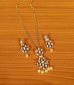 • Product Id : 4056715 • Package Details : 1 Pendant : 1 Pair Of Earrings : 1 Chain • Type : Necklace Sets • Occasion : Wedding • Look : Designer • Jewellery Work : Kundan • Color : White • Plating : Yellow Gold • Base Material : Brass • Height : 17+8 • Width : 3.9 Payments [+]