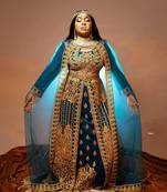 • Product Id : 4325299 • Package Details : 1 Kaftan • Type : Kaftans • Occasion : Bridal • Fabric : Net • Work : Embroidered • Type : Aari Work • Look : Traditional • Sleeve : Full Sleeve • Neck Style : V Neck • Color : Teal Blue • Stitching : Stitched Stitching [+]