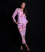 Purple Rose Broken Flower Printed Collared-Shirt Colour : Purple