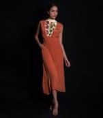 Women'S Dress In Sundial With Broken Flower Print And Embroidery Colour : Orange
