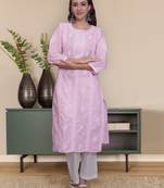 Pink Terivoil Cotton Lucknowi Chikankari Kurta