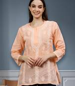 Hand Embroidered Apricot Peach Cotton Lucknowi Chikankari Top