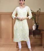 Hand Embroidered Lemon Terivoil Cotton Lucknowi Chikan Kurta