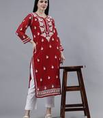 Hand Embroidered Maroon Georgette Lucknowi Chikan Kurta With Slip