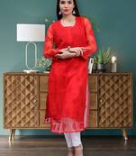 Hand Embroidered Red Georgette Lucknowi Chikan Kurta With Slip