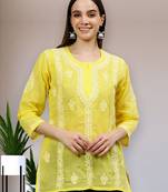 • Product Id : 4288531 • Package Details : 1 Kurta • Type : Cotton Kurtis • Fabric : Cotton • Work : Embroidered • Type : Hand Embroidery • Sleeve : Quarter Sleeve • Neck Style : Round Neck • Color : Yellow • Stitching : Stitched • Length : 31 Inches • Side Slit : Yes Payments [+]