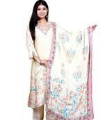 Women's Floral Print White Kurta Set For Women With Dupatta