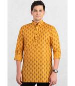 Fabric & Design: This vibrant yellow short kurta is crafted from soft cotton, ensuring comfort and breathability for casual wear. The kurta features a stylish printed design that adds a contemporary flair to a traditional silhouette. With full sleeves, it provides a relaxed yet fashionable look, making it perfect for festive occasions like Haldi ceremonies.