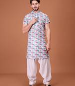 Multicolor Cotton Printed Short Sleeve Only Kurta For Mens