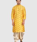 Shiwam Ethnix Men's Silk Printed Kurta And Pitambari Cotton Silk Dhoti Jashn Collection