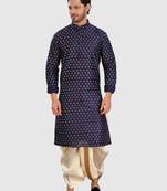 Shiwam Ethnix Men's Silk Printed Kurta And Pitambari Cotton Silk Dhoti Jashn Collection
