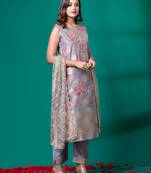 • Product Id : 4490830 • Package Details : 1 Top/1 Pant/1 Dupatta • Type : Readymade Suits For Women • Work : Embroidered • Look : Traditional • Sleeve : Elbow Sleeve • Neck Style : Round Neck • Color : Grey • Fabric : Silk Blend • Stitching : Stitched Payments [+]