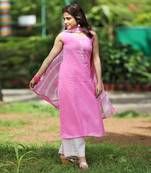 • Product Id : 4029943 • Package Details : 1 Kurti / 1 Bottom / 1 Dupatta • Type : Cotton Kurtis • Occasion : Casual • Fabric : Cotton • Work : Embroidered • Type : Hand Embroidery • Look : Designer • Sleeve : Sleeveless • Neck Style : Round Neck • Color : Pink • Stitching : Stitched • Length : 50 Payments [+]