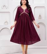 • Product Id : 4463444 • Package Details : 1 Anarkali Gown • Type : Plus Size Kurtis • Fabric : Rayon • Work : Plain • Type : Dori Embroidery • Look : Designer • Sleeve : Quarter Sleeve • Neck Style : Round Neck • Color : Wine • Stitching : Stitched • Length : 48.0 Payments [+]