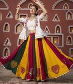 Multicolor Yellow Thread Embroidered With Mirror Viscose Rayon Traditional Party Festival Stitched Lehenga Choli Jacket