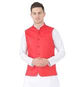 Red Plain Viscose Nehru Jacket