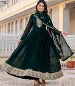Green Faux Georgette Zari Sequins Embroidery Anarkali Gown With Heavy Dupatta Stitched