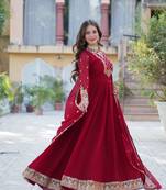 • Product Id : 4526384 • Package Details : 1 Gown / 1 Dupatta • Type : Anarkali Suit • Fabric : Georgette • Work : Embroidered • Type : Faux Georgette • Look : Designer • Sleeve : Full Sleeve • Neck Style : V Neck • Color : Maroon • Stitching : Stitched • Length : 56.0 Payments [+]