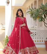 • Product Id : 4491282 • Package Details : 1 Gown / 1 Dupatta • Type : Anarkali Suit • Fabric : Georgette • Work : Embroidered • Type : Sequins Work • Sleeve : Full Sleeve • Neck Style : V Neck • Color : Pink • Stitching : Stitched • Occasion : Ethnic • Style : Fit Flare • Length : Long • Length : Long Payments [+]
