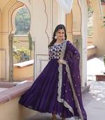 • Product Id : 4491020 • Package Details : 1 Gown / 1 Dupatta • Type : Anarkali Suit • Occasion : Party Wear • Fabric : Georgette • Work : Embroidered • Type : Sequins Work • Sleeve : Full Sleeve • Neck Style : Round Neck • Color : Purple • Stitching : Stitched • Style : Flared • Length : Long Payments [+]