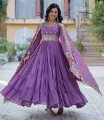 • Product Id : 4526381 • Package Details : 1 Gown / 1 Dupatta • Type : Anarkali Suit • Fabric : Georgette • Work : Embroidered • Type : Faux Georgette • Look : Designer • Sleeve : Full Sleeve • Neck Style : Round Neck • Color : Purple • Stitching : Stitched • Length : 56.0 Payments [+]